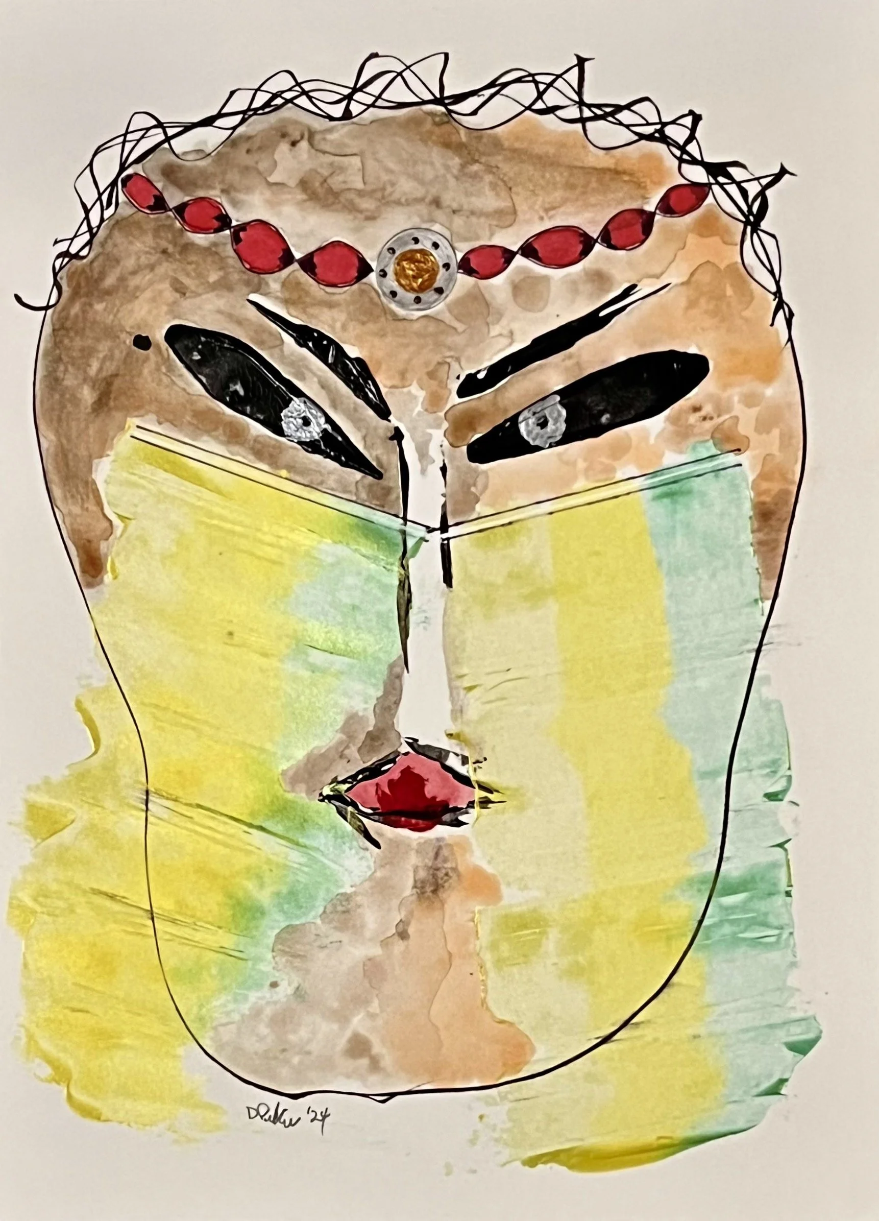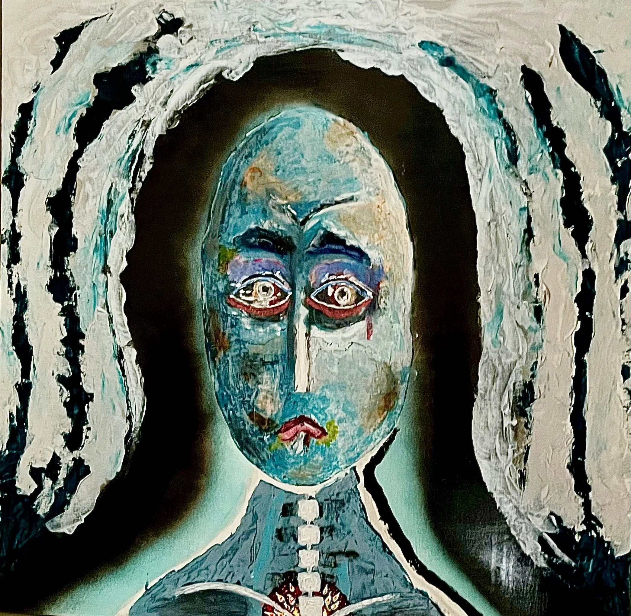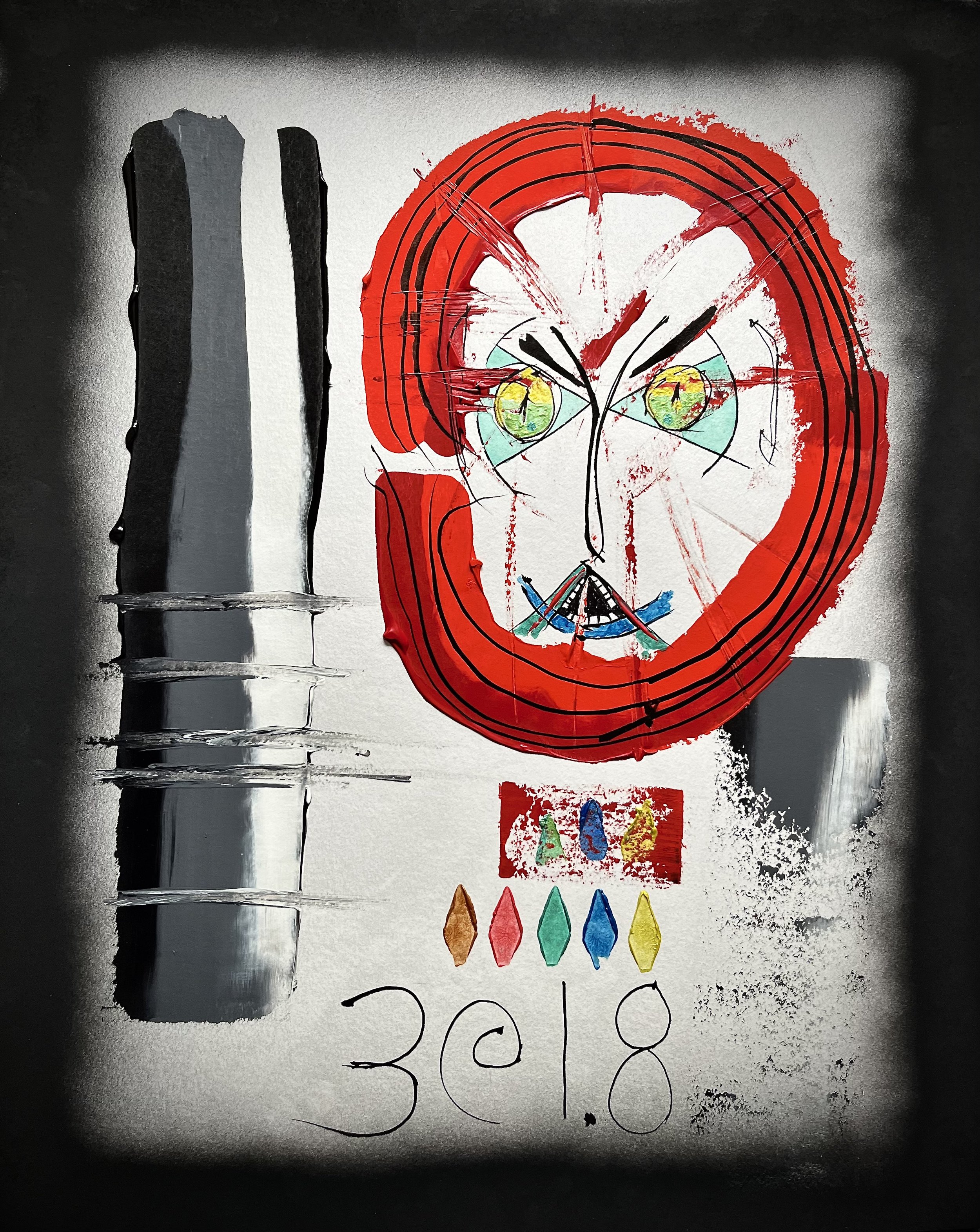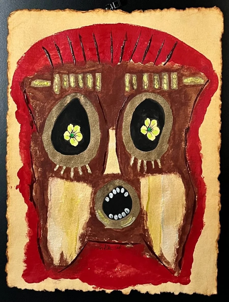 At age five, I began drawing pictures with a sense that they were art—simple images in uncomplicated settings. Much of my visual art still exhibits that tendency. I paint a lot of faces—portraits and masks. “Contemporary folk artist” is what I call myself; some have categorized me as an “outsider” artist. That’s fine with me. I paint because I have the urge to do so. It fills an empty room in my human experience. I love it when one of my paintings does the same for someone else.