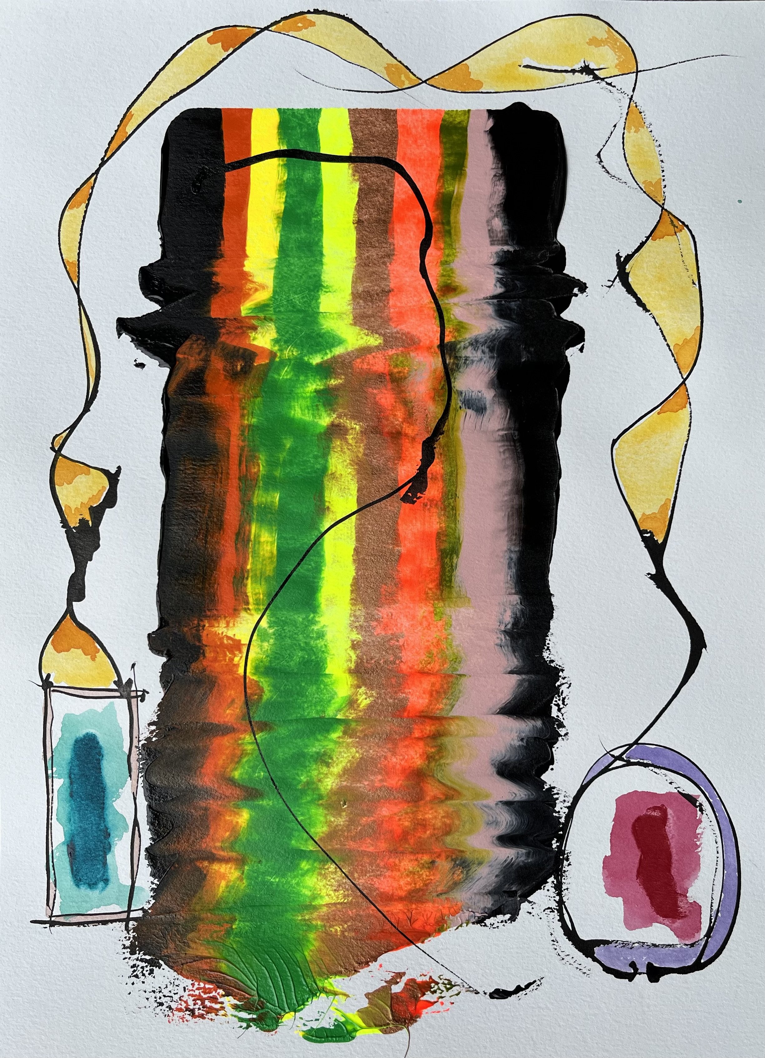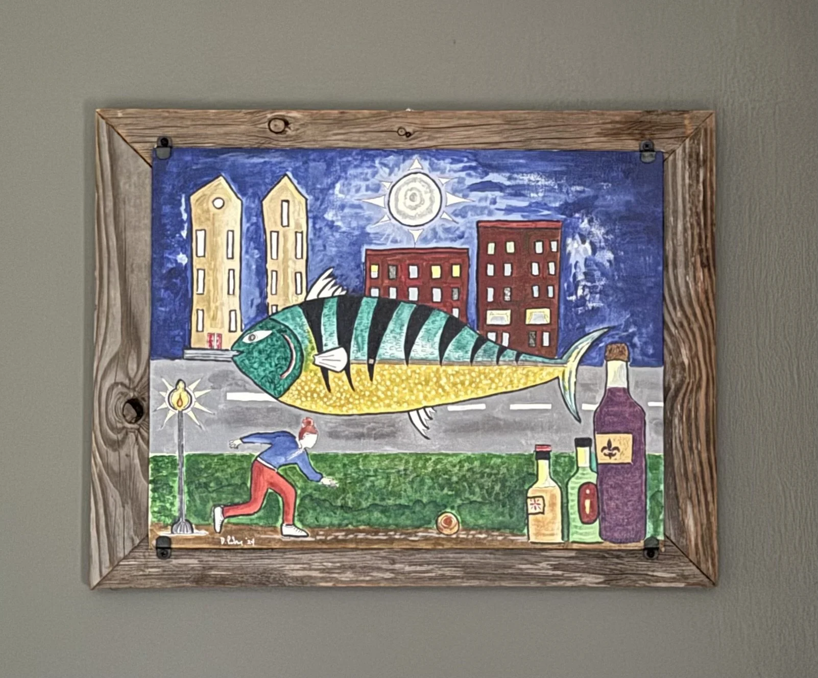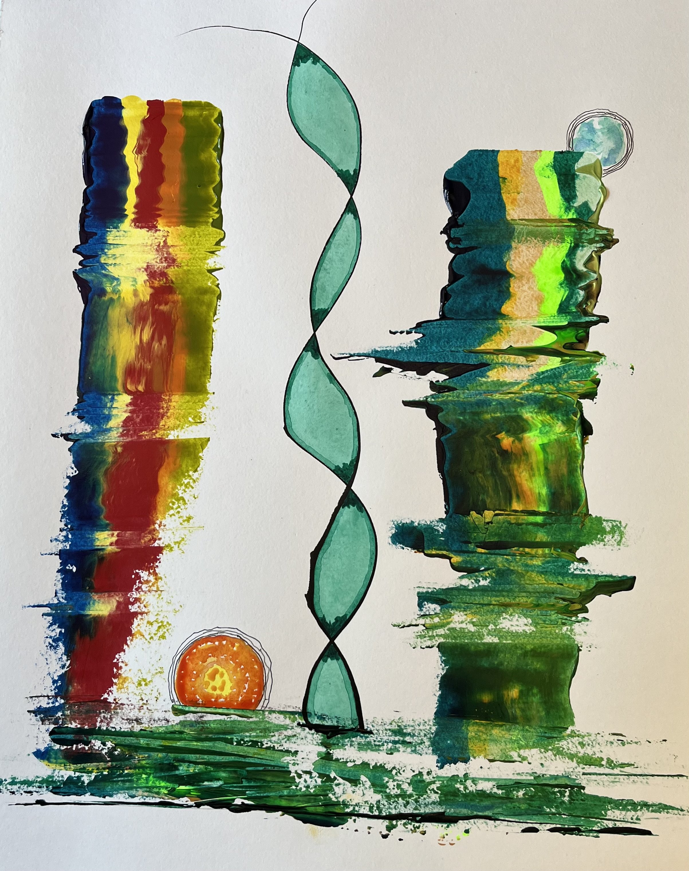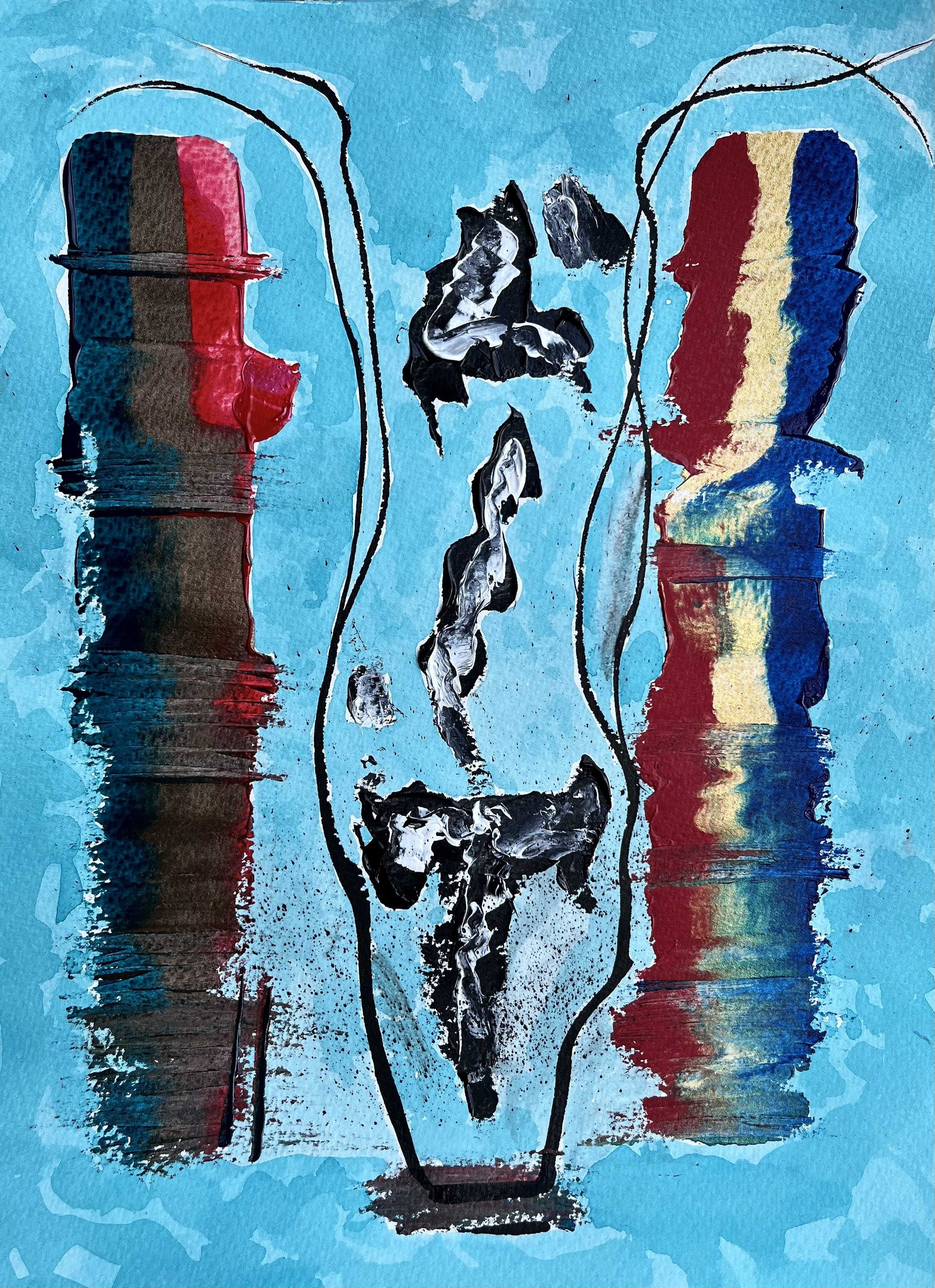 At age five, I began drawing pictures with a sense that they were art—simple images in uncomplicated settings. Much of my visual art still exhibits that tendency. I paint a lot of faces—portraits and masks. “Contemporary folk artist” is what I call myself; some have categorized me as an “outsider” artist. That’s fine with me. I paint because I have the urge to do so. It fills an empty room in my human experience. I love it when one of my paintings does the same for someone else.