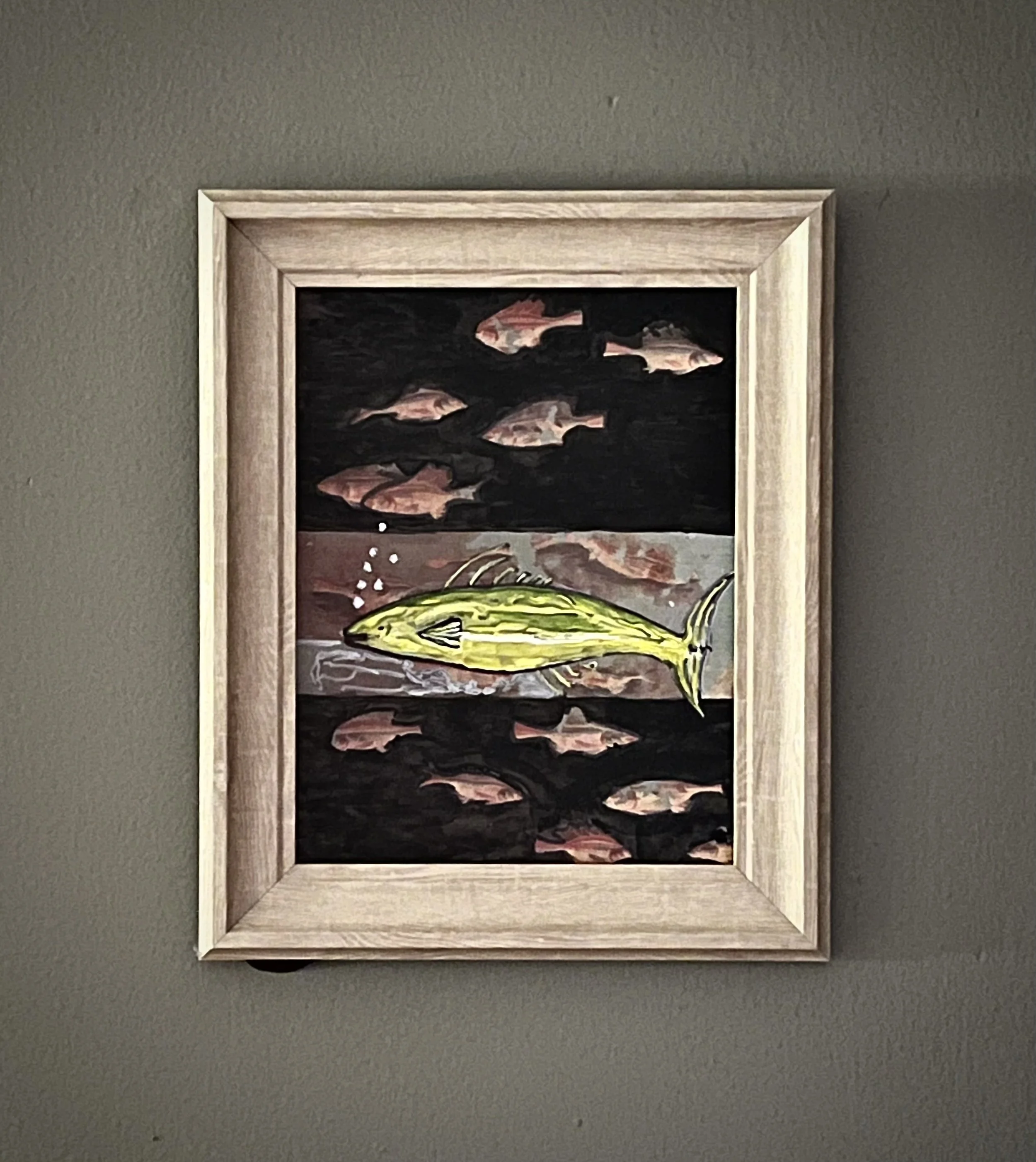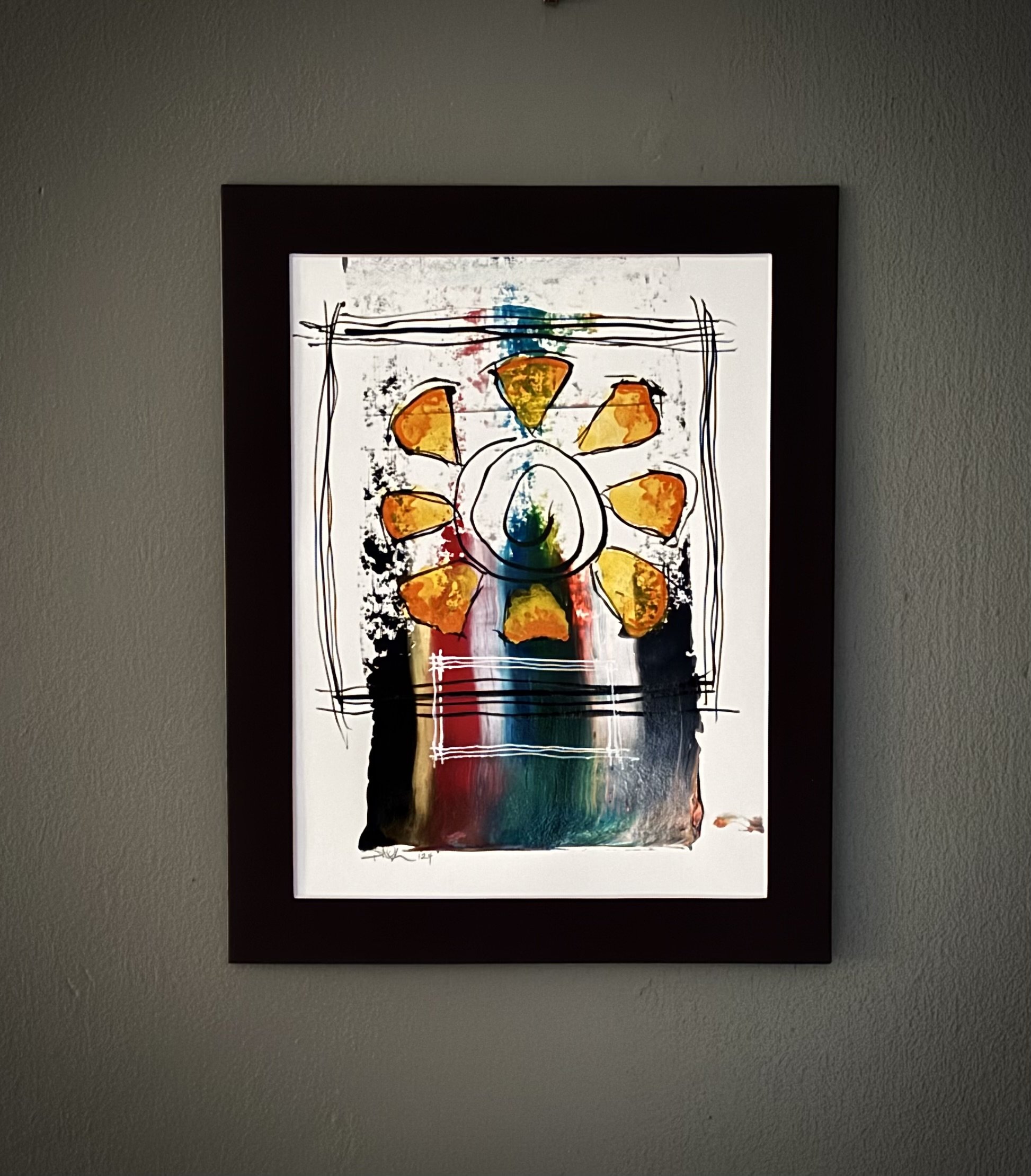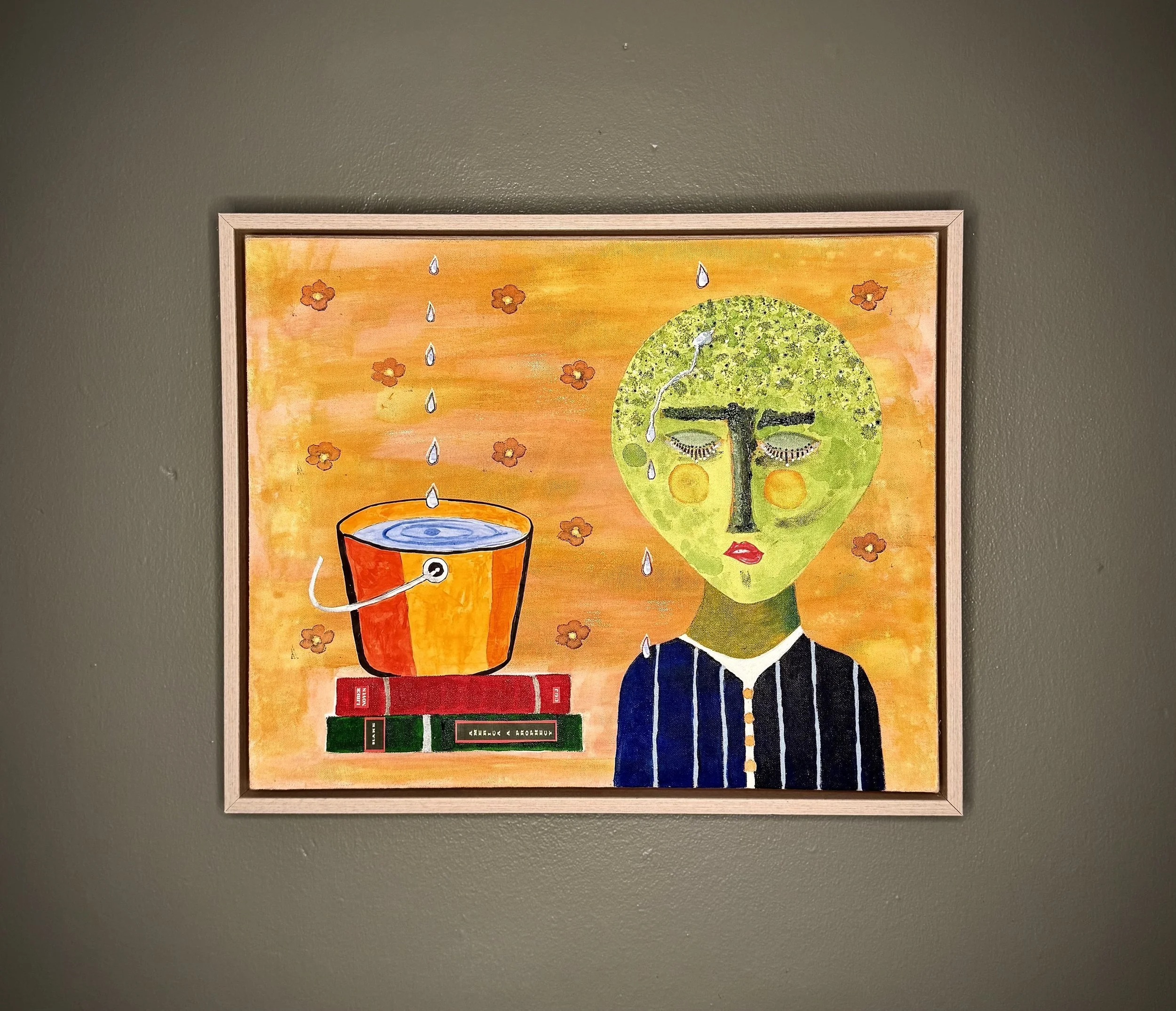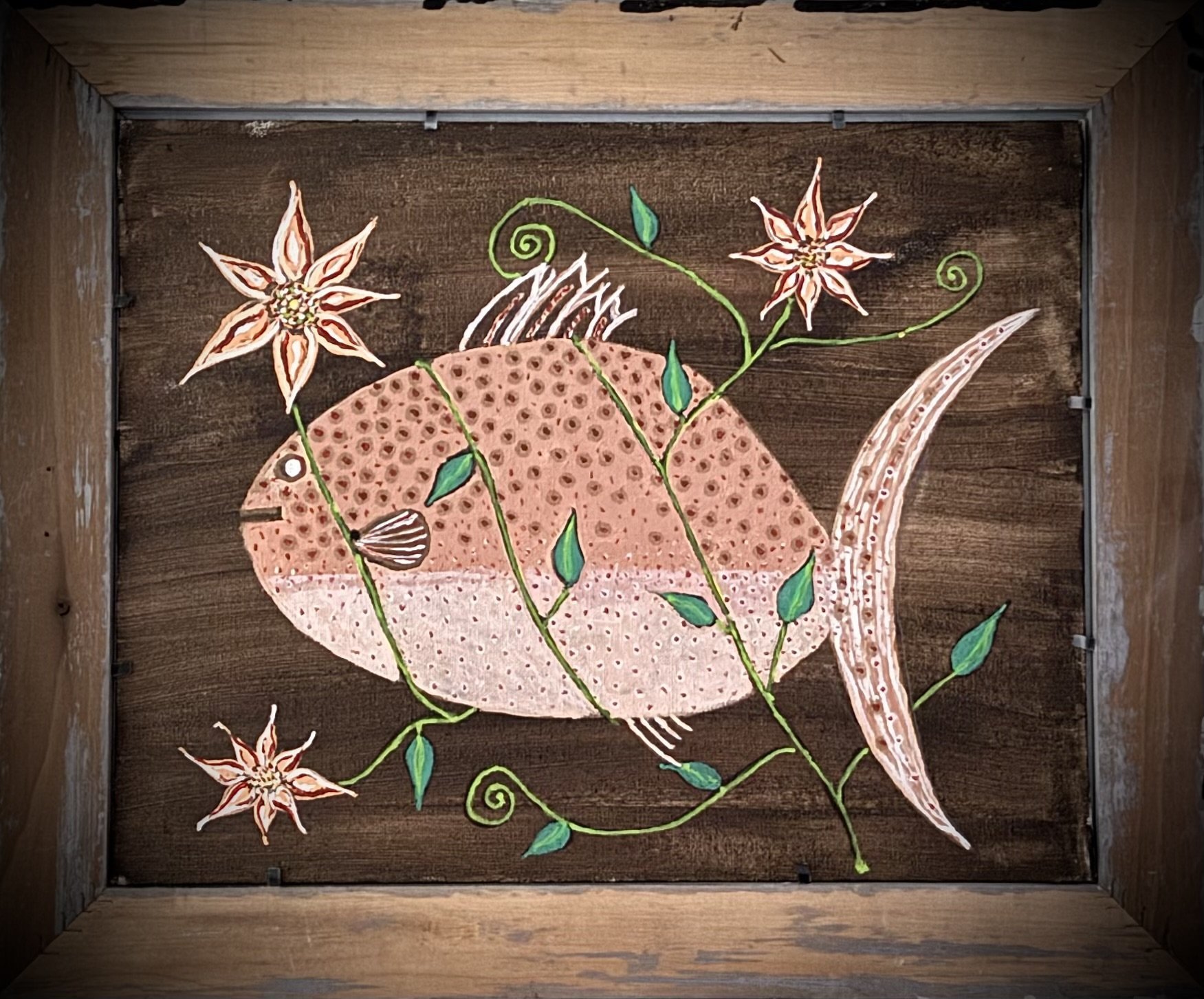At age five, I began drawing pictures with a sense that they were art—simple images in uncomplicated settings. Much of my visual art still exhibits that tendency. I paint a lot of faces—portraits and masks. “Contemporary folk artist” is what I call myself; some have categorized me as an “outsider” artist. That’s fine with me. I paint because I have the urge to do so. It fills an empty room in my human experience. I love it when one of my paintings does the same for someone else.