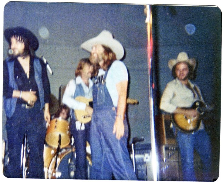 I was new in Nashville but got an invitation to accompany fiddle-maestro Vassar Clements to War Memorial Auditorium. I can’t recall whose show it was, but I found myself onstage during the encore with Willie Nelson, Waylon Jennings, and several other luminaries from the Outlaw Country scene. The encore became a show in and of itself. The photo was taken by high school senior Wade Jaynes who, as destiny would have it, became the bass player in Chagall Guevara.